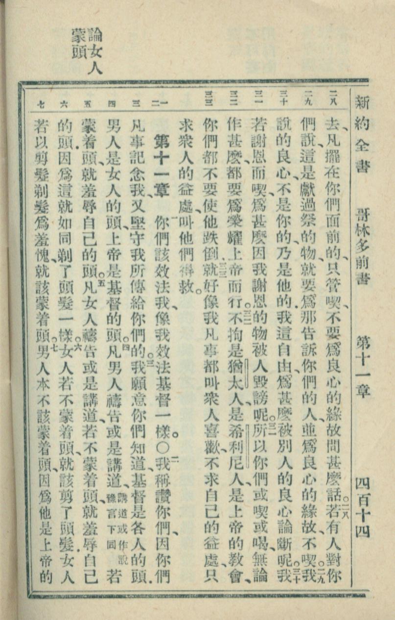 1936年新約全書 哥林多前書 10 章 28 節到 11 章 7 節