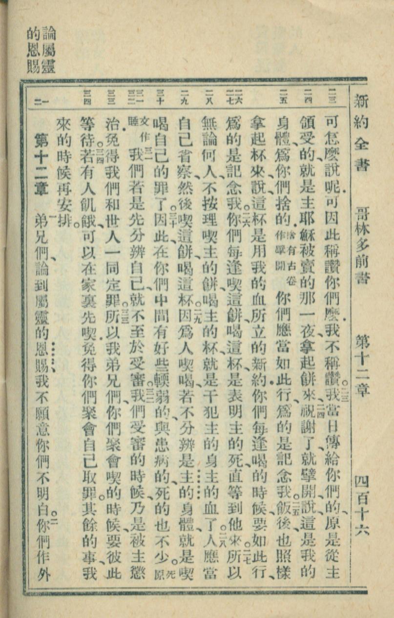 1936年新約全書 哥林多前書 11 章 23 節到 12 章 2 節