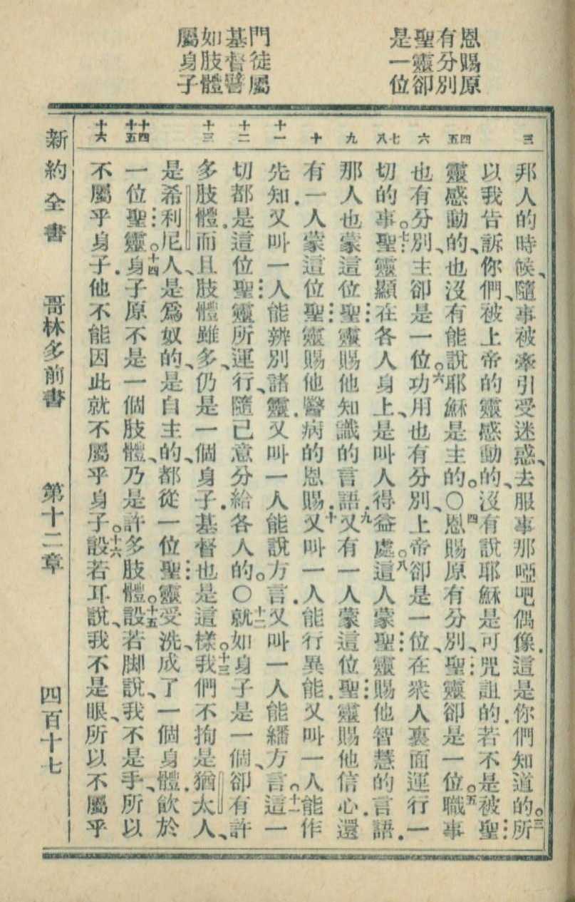 1936年新約全書 哥林多前書 12 章 3 節到 12 章 16 節