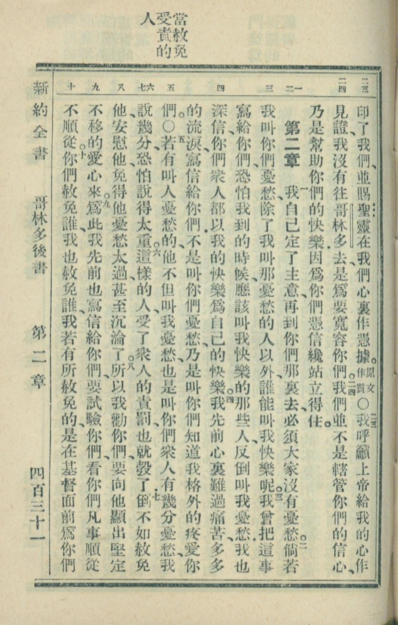 1936年新約全書 哥林多後書 1 章 23 節到 2 章 10 節