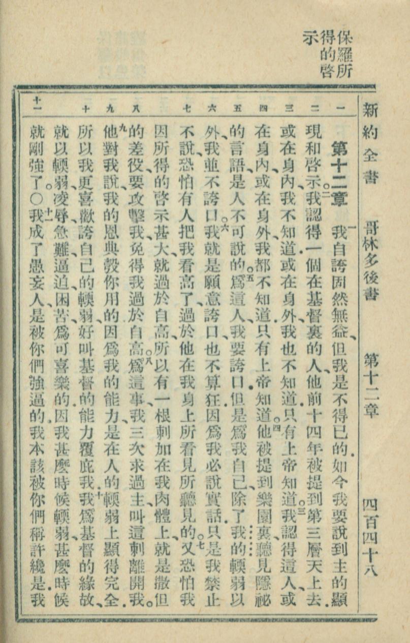 1936年新約全書 哥林多後書 12 章 1 節到 12 章 11 節