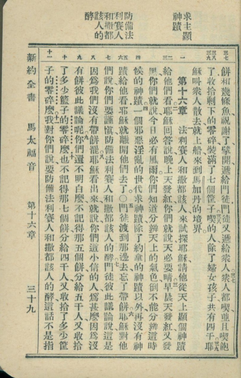 1936年新約全書 馬太福音 15 章 37 節到 16 章 11 節