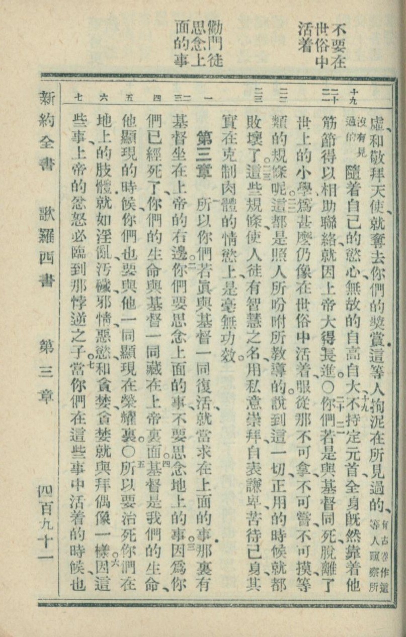 1936年新約全書 歌羅西書 2 章 19 節到 3 章 7 節