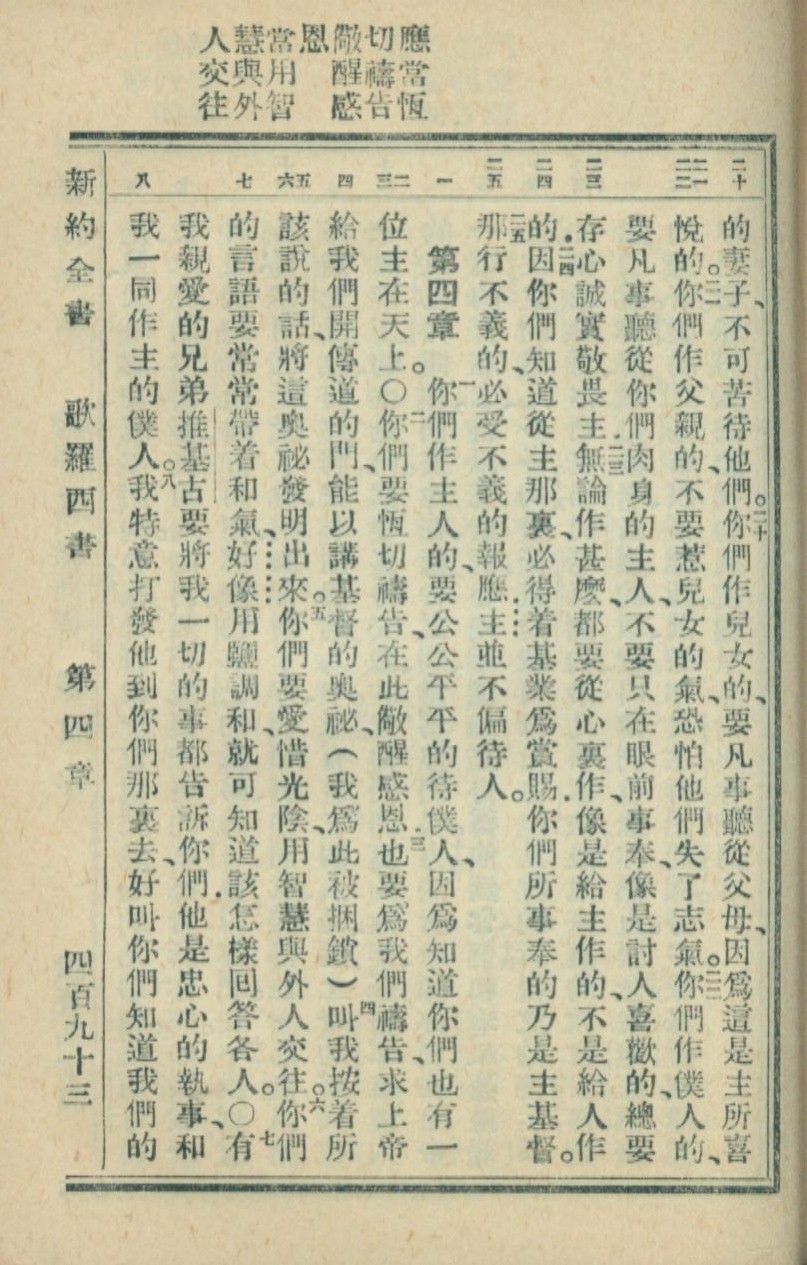 1936年新約全書 歌羅西書 3 章 20 節到 4 章 8 節