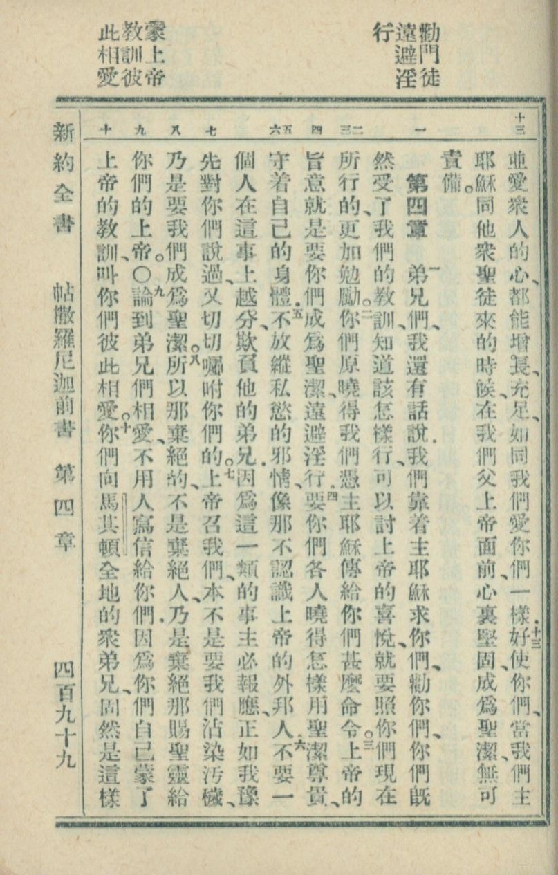 1936年新約全書 帖撒羅尼迦前書 3 章 13 節到 4 章 10 節