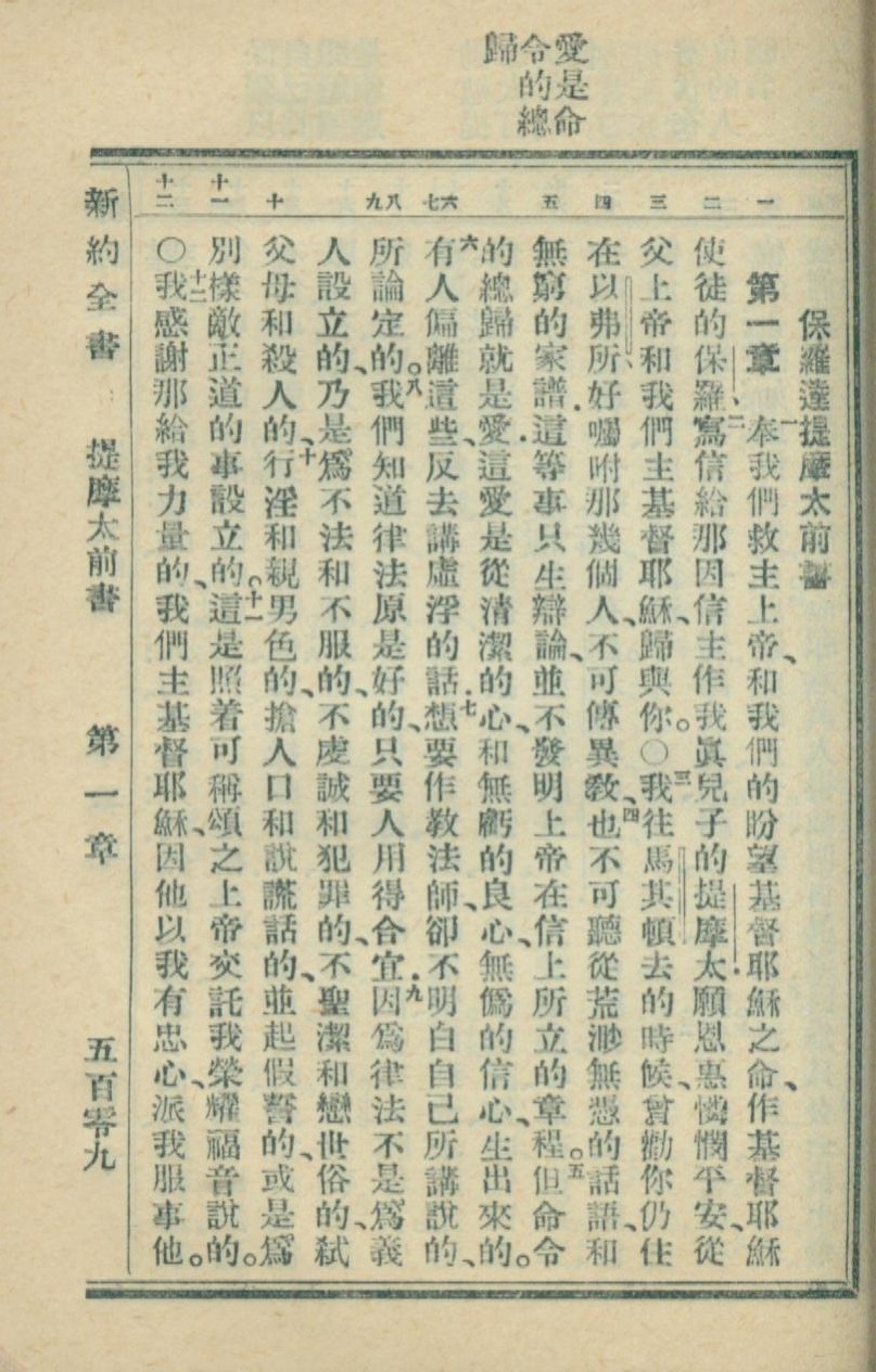 1936年新約全書 提摩太前書 1 章 1 節到 1 章 12 節