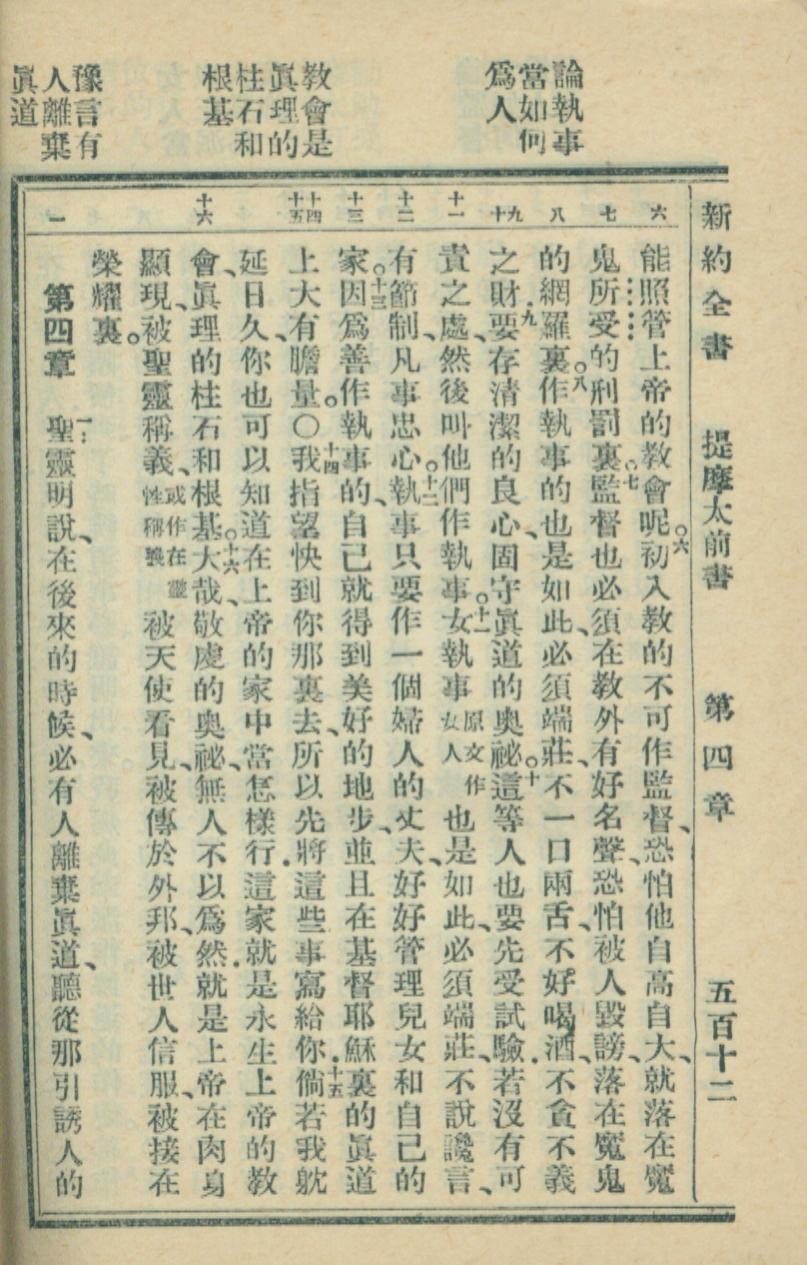1936年新約全書 提摩太前書 3 章 6 節到 4 章 1 節