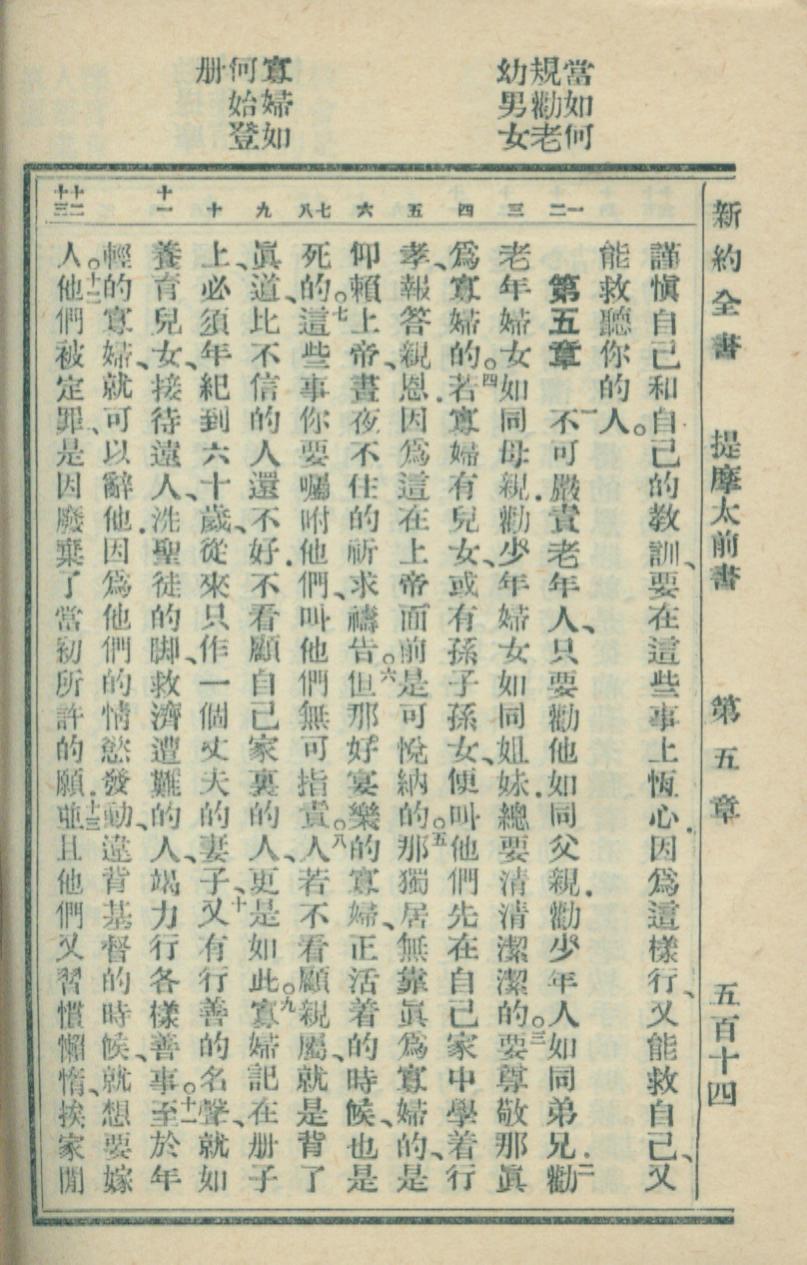 1936年新約全書 提摩太前書 4 章 16 節到 5 章 13 節