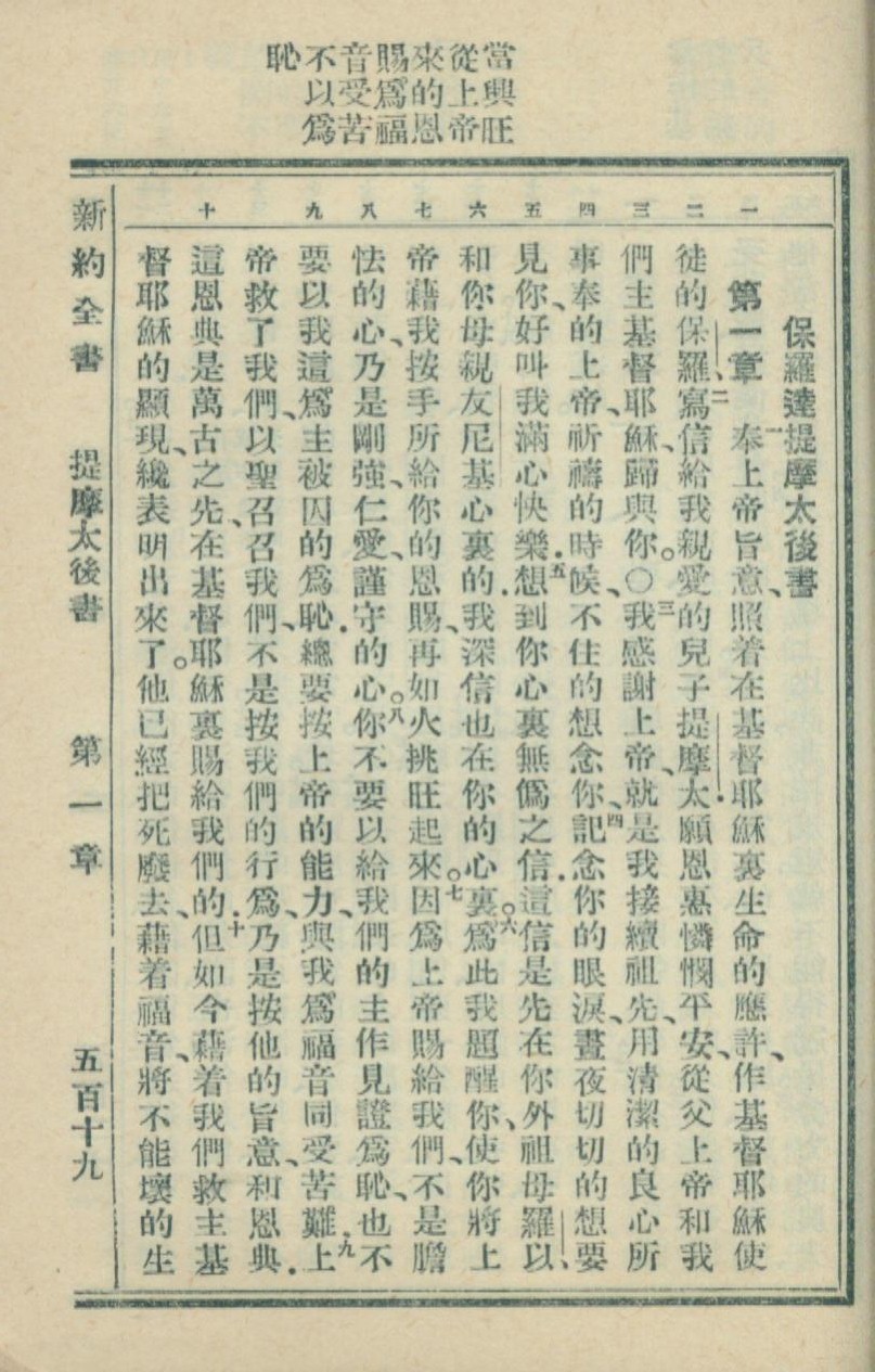 1936年新約全書 提摩太後書 1 章 1 節到 1 章 10 節