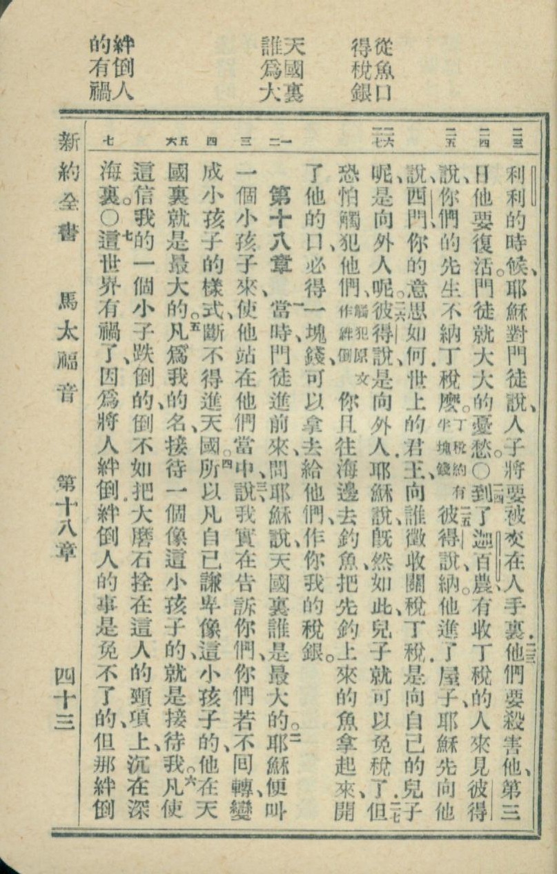 1936年新約全書 馬太福音 17 章 23 節到 18 章 7 節