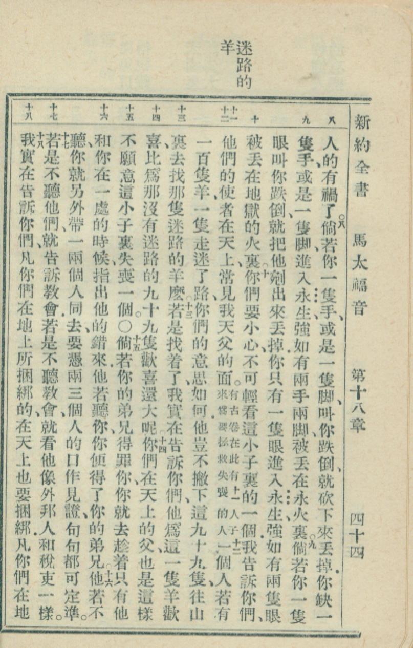 1936年新約全書 馬太福音 18 章 8 節到 18 章 18 節