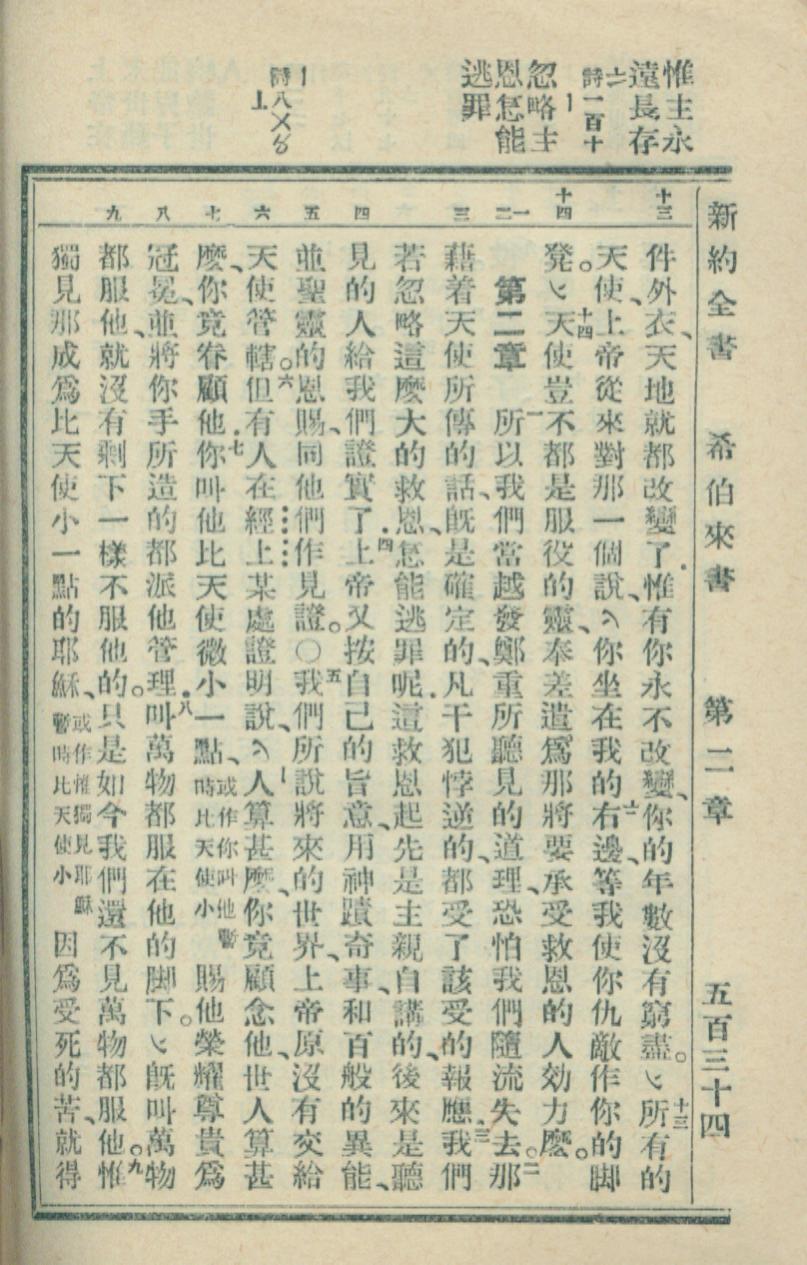 1936年新約全書 希伯來書 1 章 13 節到 2 章 9 節
