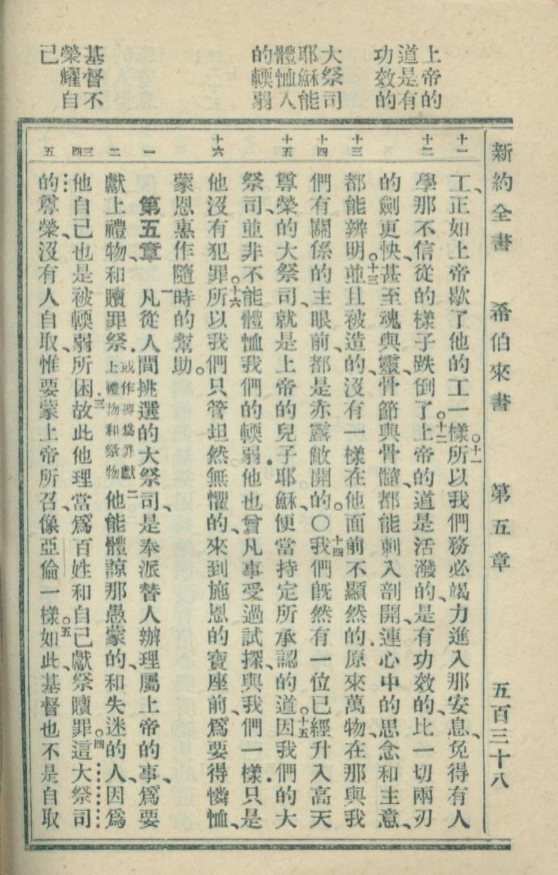 1936年新約全書 希伯來書 4 章 11 節到 5 章 5 節