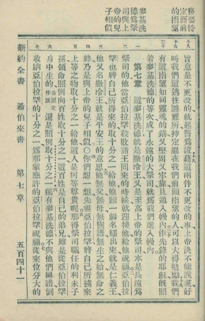 1936年新約全書 希伯來書 6 章 18 節到 7 章 7 節