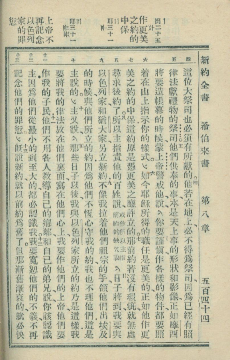 1936年新約全書 希伯來書 8 章 4 節到 8 章 13 節