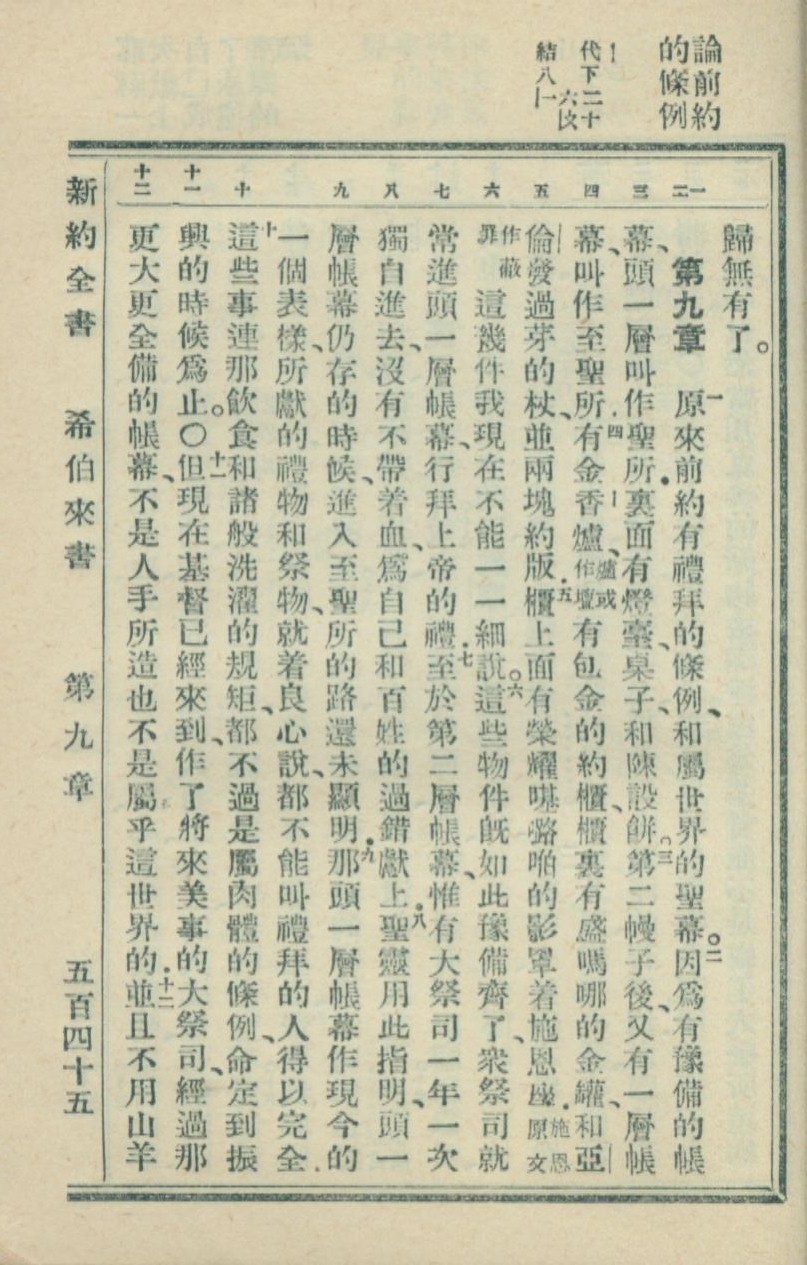 1936年新約全書 希伯來書 9 章 1 節到 9 章 12 節