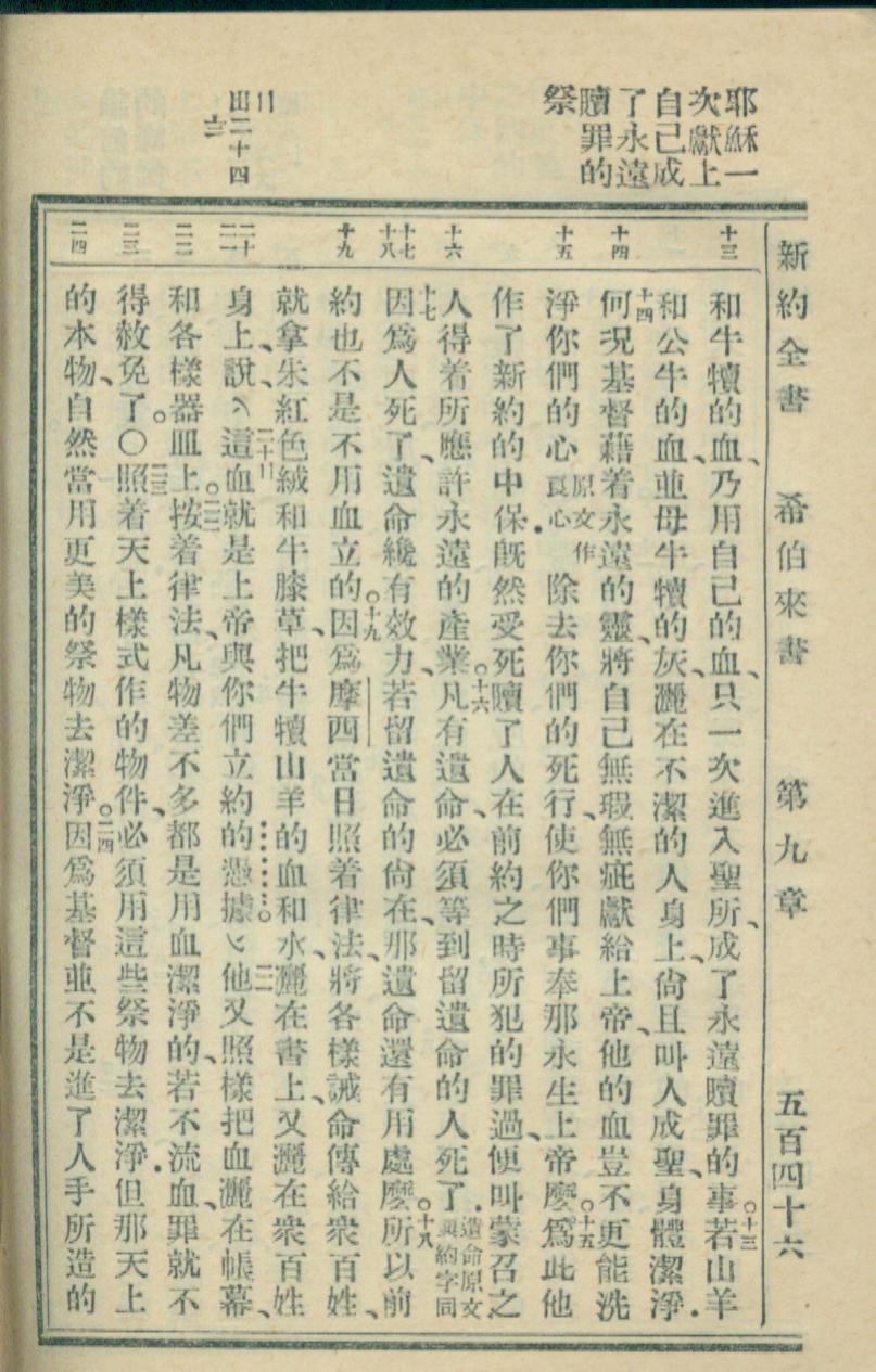 1936年新約全書 希伯來書 9 章 13 節到 9 章 24 節