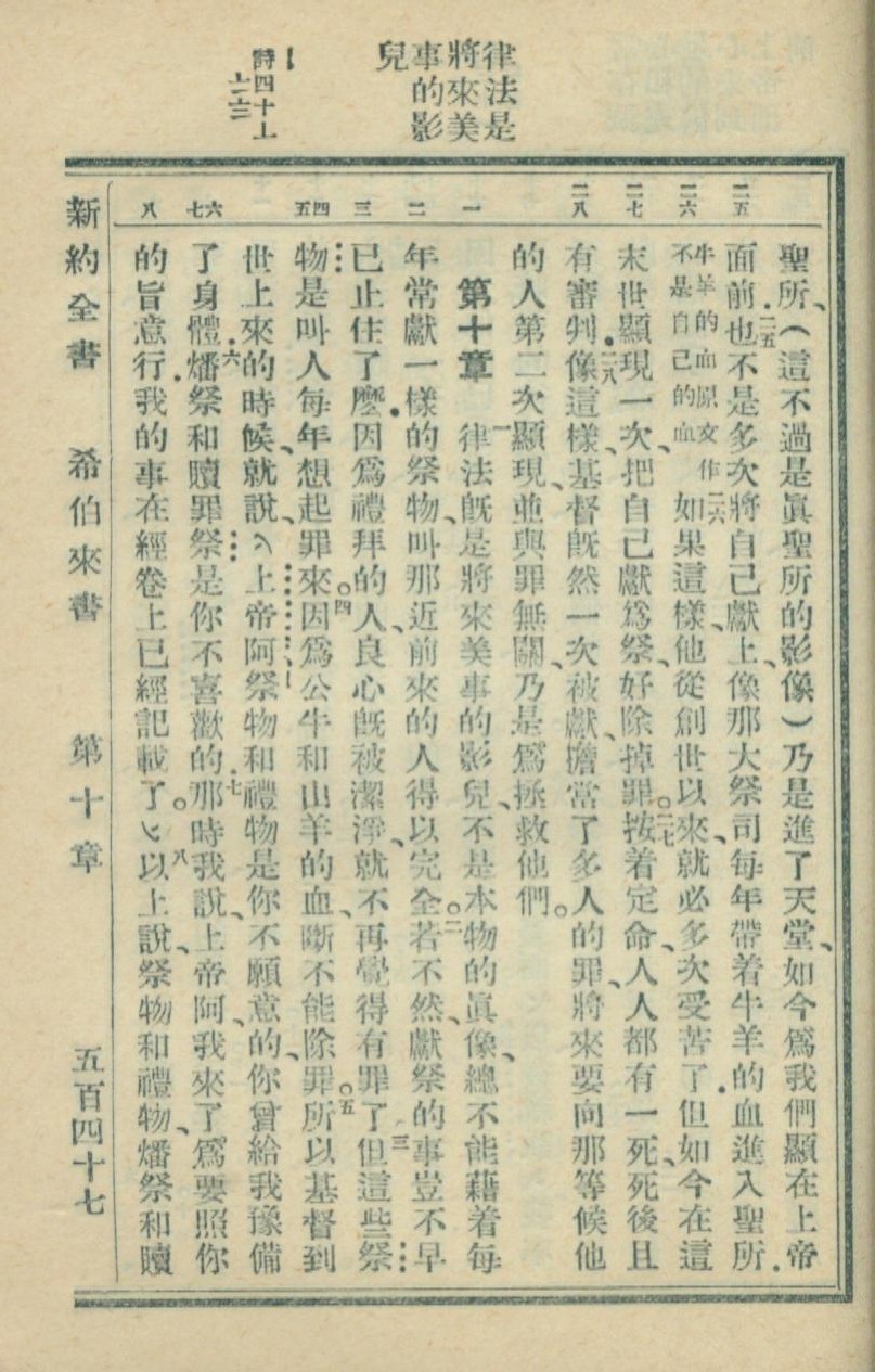 1936年新約全書 希伯來書 9 章 25 節到 10 章 8 節