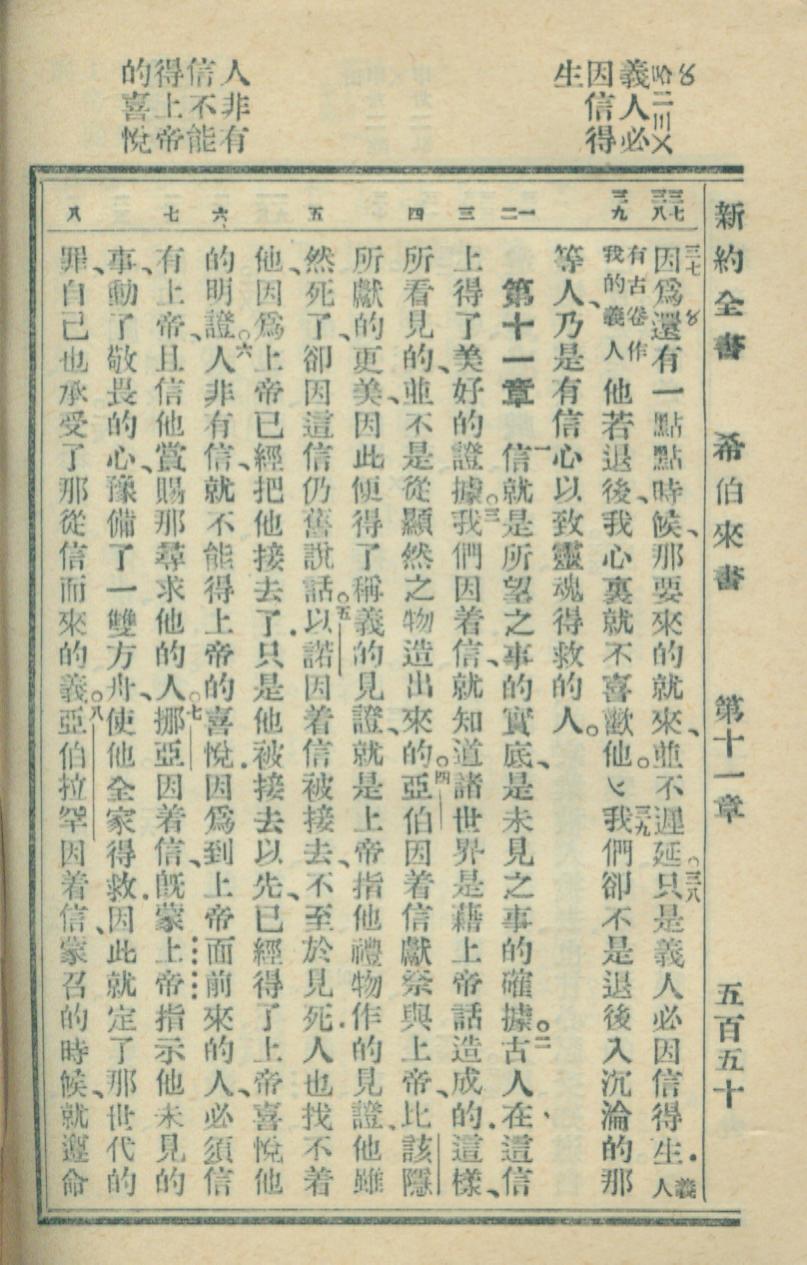1936年新約全書 希伯來書 10 章 37 節到 11 章 8 節