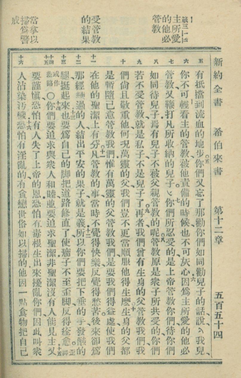 1936年新約全書 希伯來書 12 章 5 節到 12 章 16 節