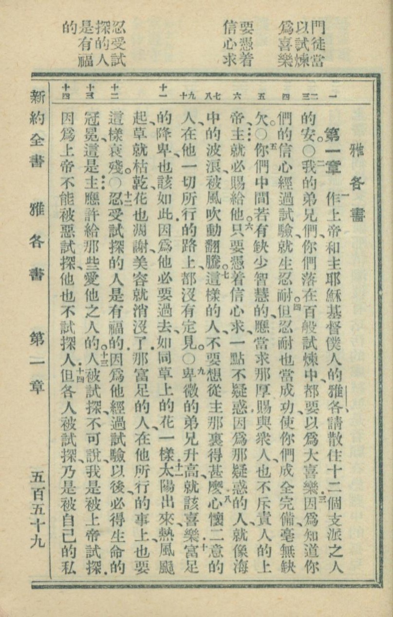1936年新約全書 雅各書 1 章 1 節到 1 章 14 節