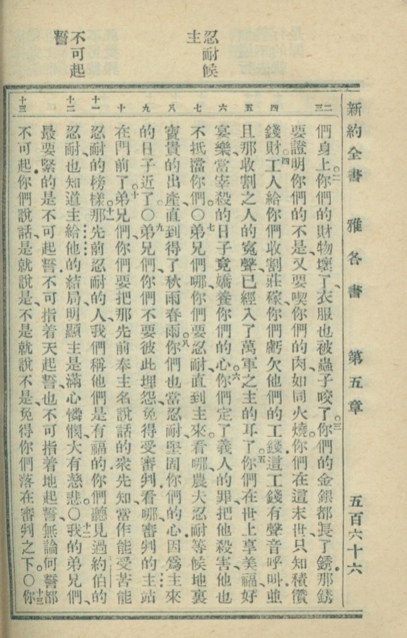 1936年新約全書 雅各書 5 章 2 節到 5 章 13 節