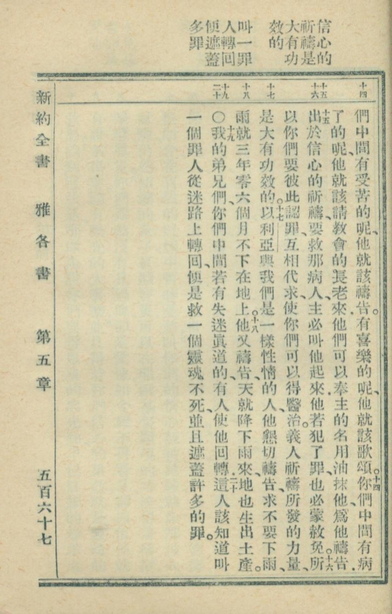 1936年新約全書 雅各書 5 章 14 節到 5 章 20 節