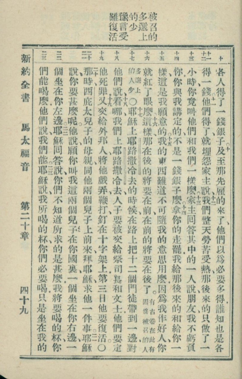 1936年新約全書 馬太福音 20 章 10 節到 20 章 23 節