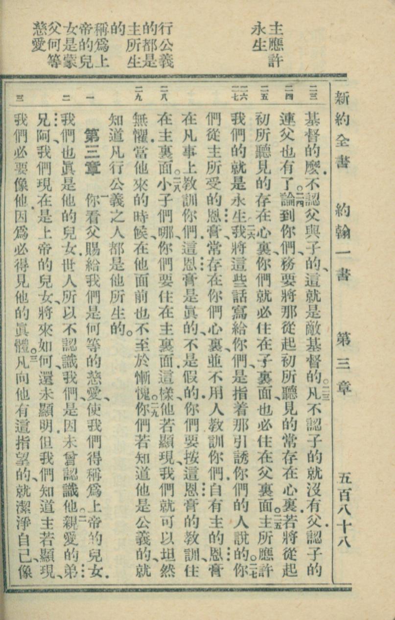 1936年新約全書 約翰一書 2 章 23 節到 3 章 3 節