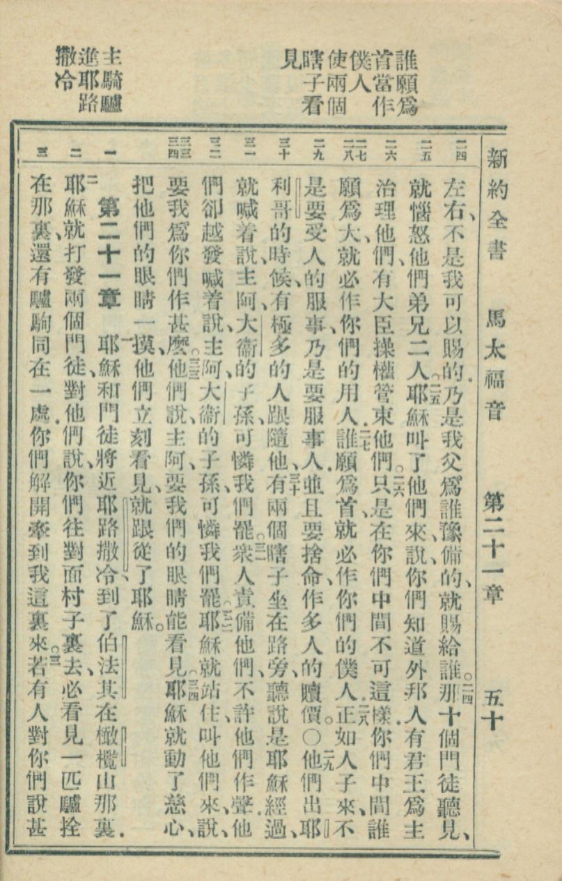 1936年新約全書 馬太福音 20 章 24 節到 21 章 3 節