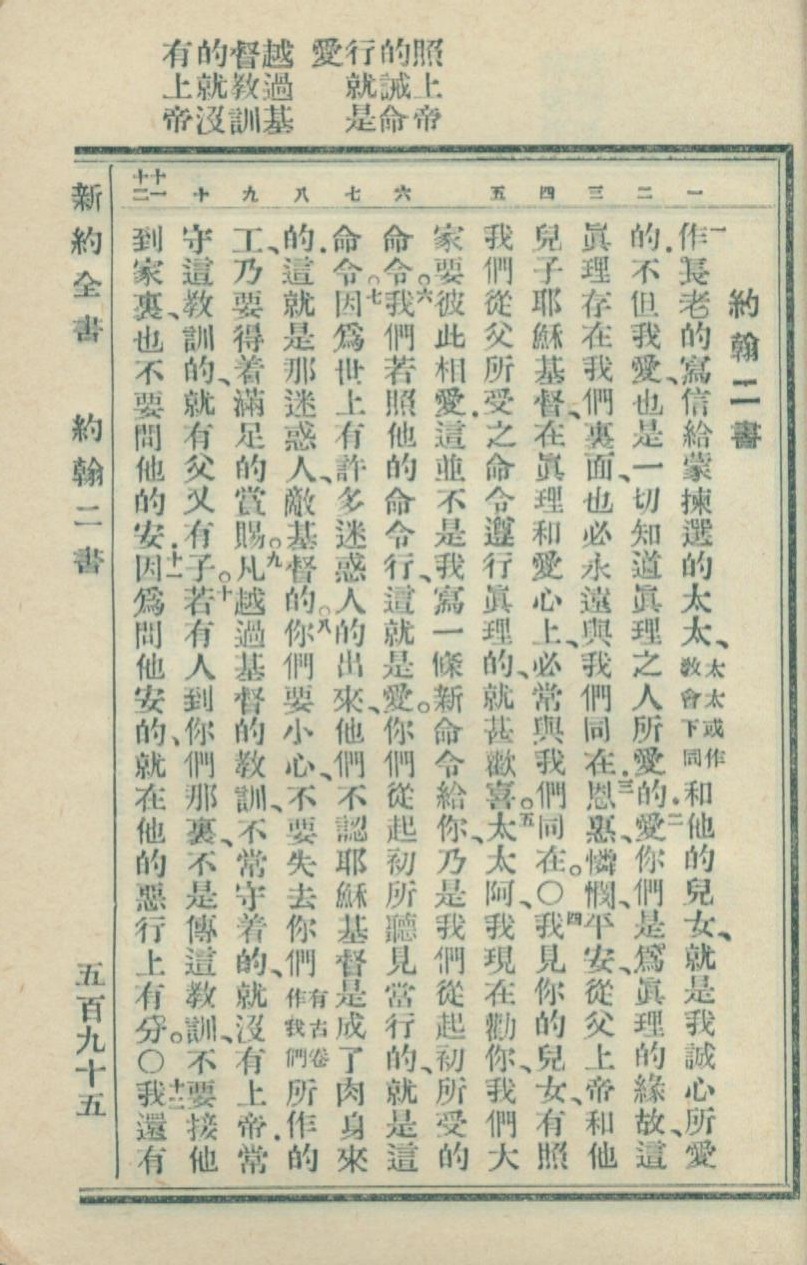 1936年新約全書 約翰二書 1 章 1 節到 1 章 11 節