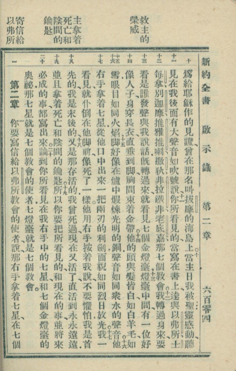 1936年新約全書 啟示錄 1 章 10 節到 2 章 1 節