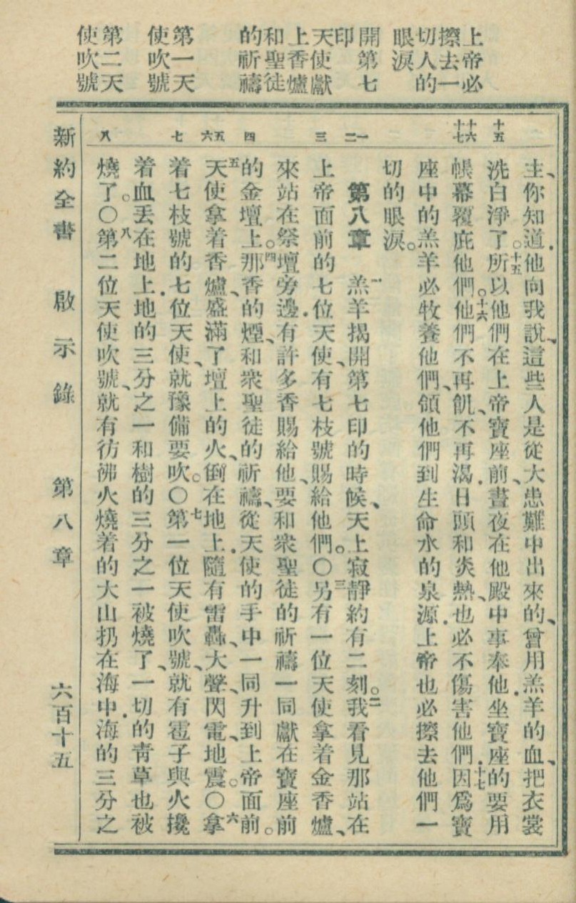 1936年新約全書 啟示錄 7 章 15 節到 8 章 8 節