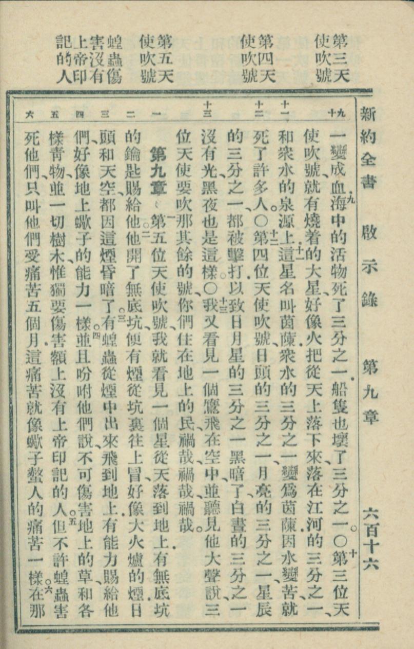 1936年新約全書 啟示錄 8 章 9 節到 9 章 6 節