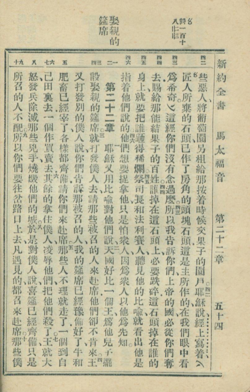 1936年新約全書 馬太福音 21 章 42 節到 22 章 10 節