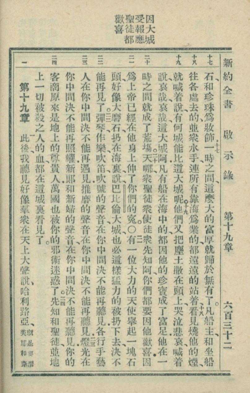 1936年新約全書 啟示錄 18 章 17 節到 19 章 1 節