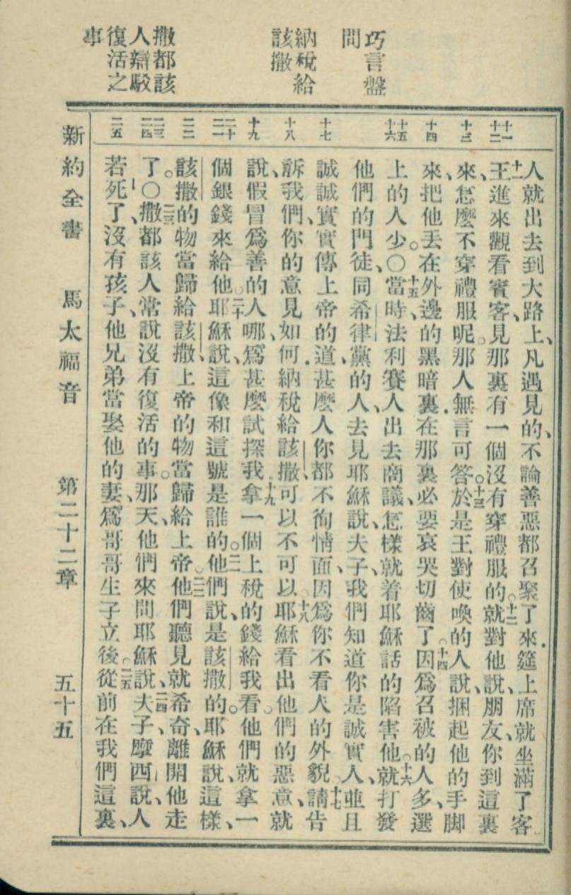 1936年新約全書 馬太福音 22 章 11 節到 22 章 25 節
