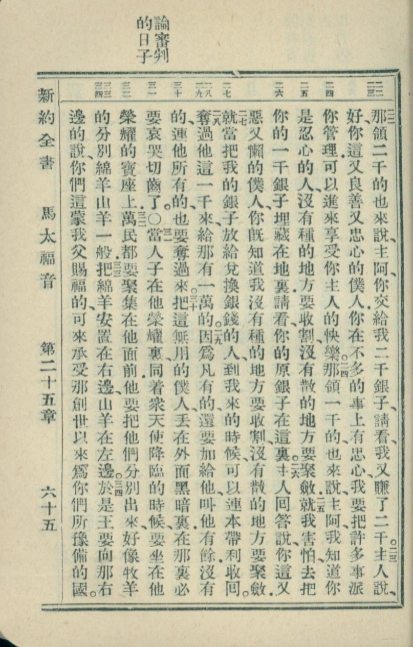 1936年新約全書 馬太福音 25 章 22 節到 25 章 34 節