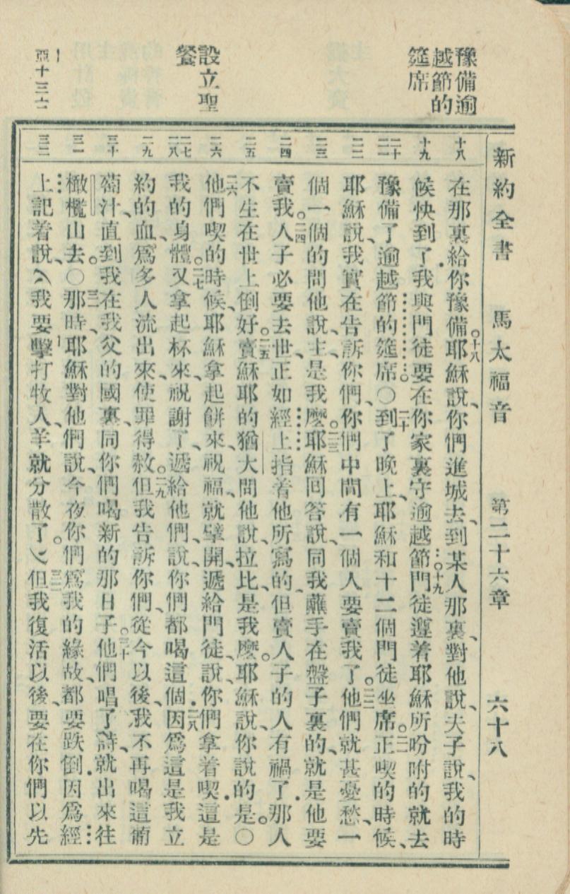 1936年新約全書 馬太福音 26 章 18 節到 26 章 32 節