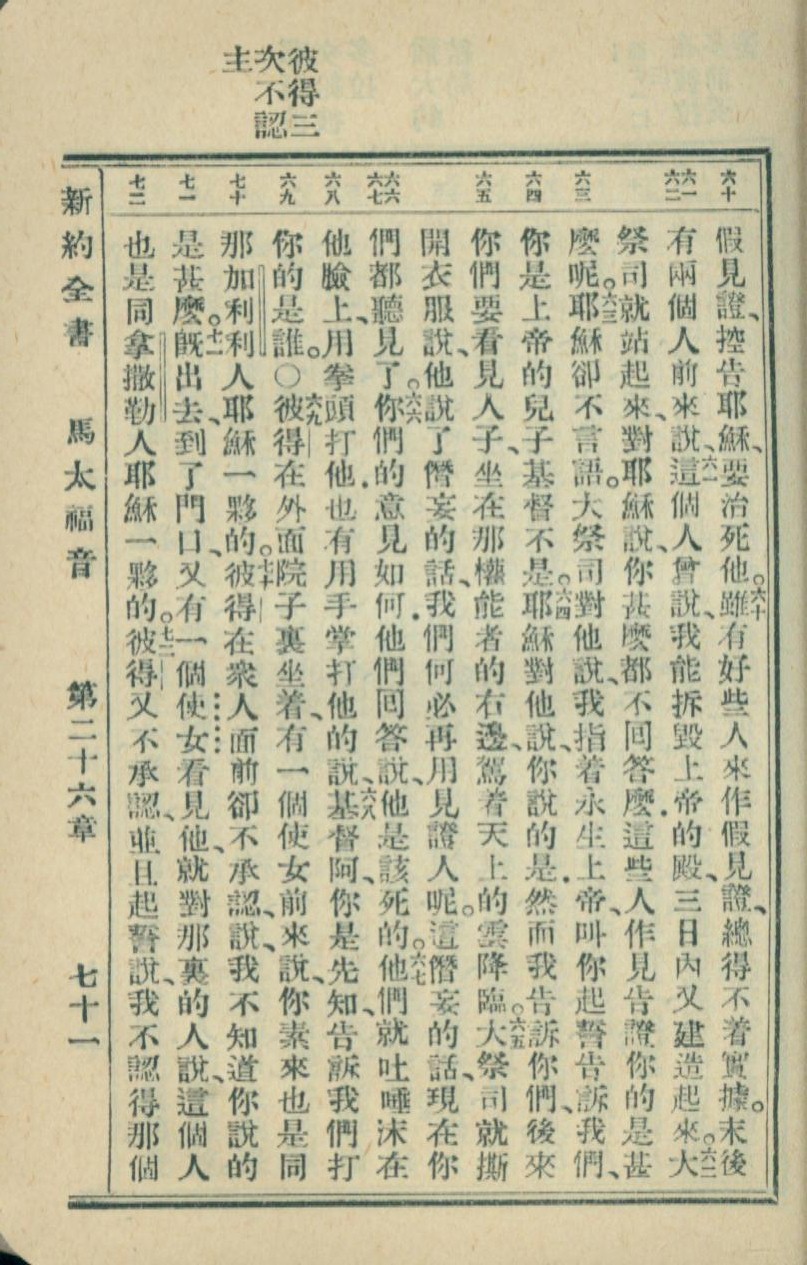 1936年新約全書 馬太福音 26 章 60 節到 26 章 72 節