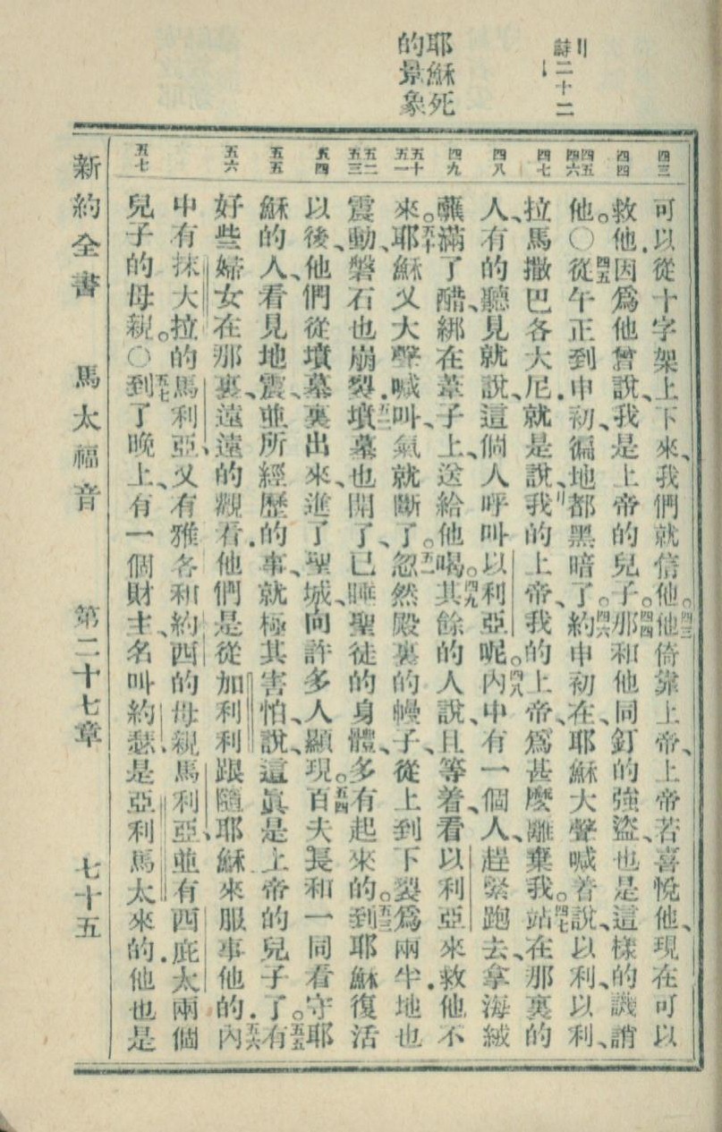 1936年新約全書 馬太福音 27 章 43 節到 27 章 57 節