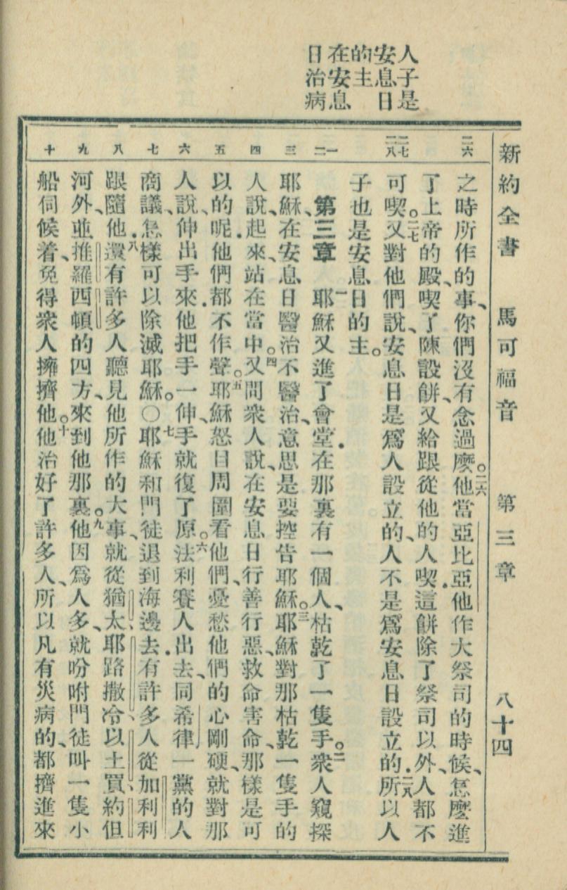 1936年新約全書 馬可福音 2 章 26 節到 3 章 10 節