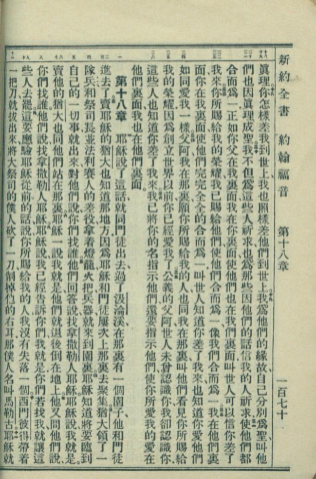 1949年新約全書 約翰福音 17 章 18 節到 18 章 11 節