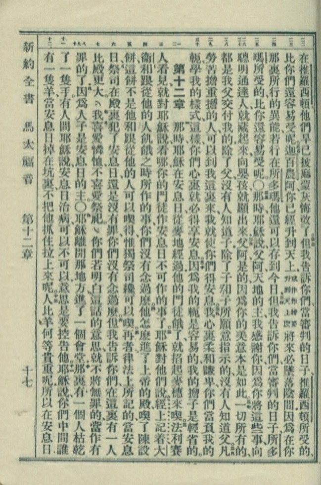 1949年新約全書 馬太福音 11 章 22 節到 12 章 12 節