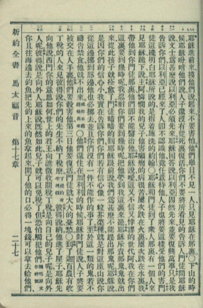 1949年新約全書 馬太福音 17 章 7 節到 17 章 27 節