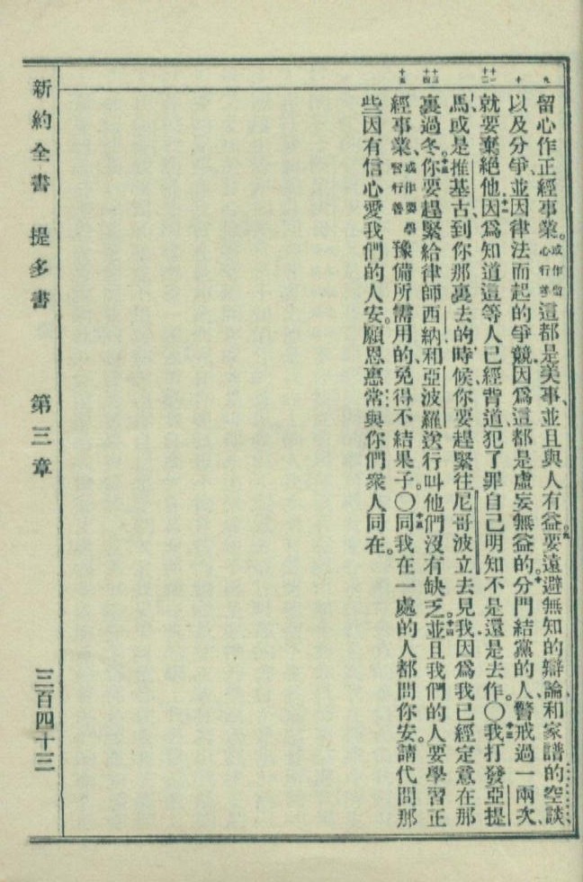 1949年新約全書 提多書 3 章 9 節到 3 章 15 節