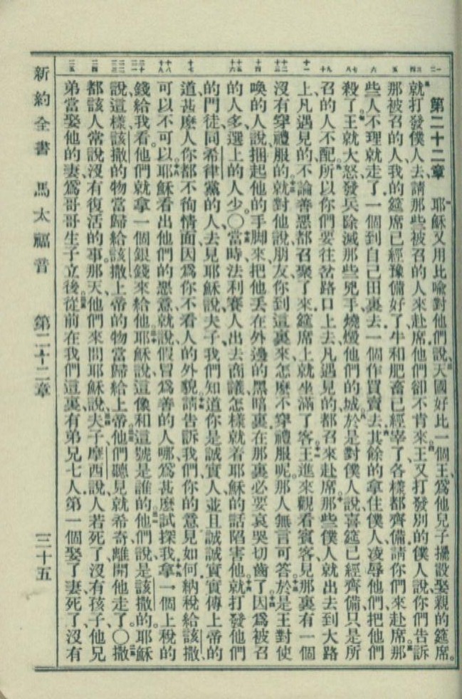 1949年新約全書 馬太福音 22 章 1 節到 22 章 25 節
