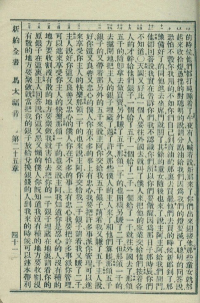 1949年新約全書 馬太福音 25 章 6 節到 25 章 27 節