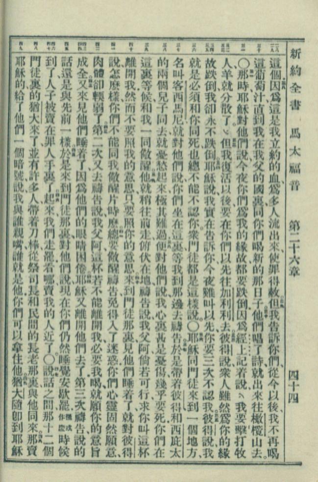 1949年新約全書 馬太福音 26 章 28 節到 26 章 49 節