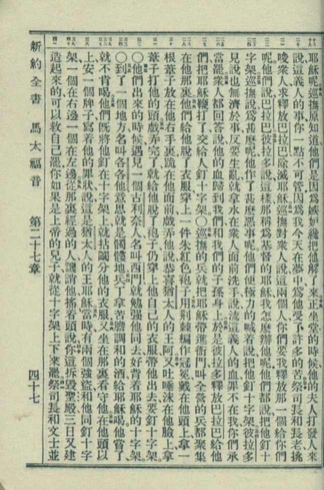 1949年新約全書 馬太福音 27 章 18 節到 27 章 41 節